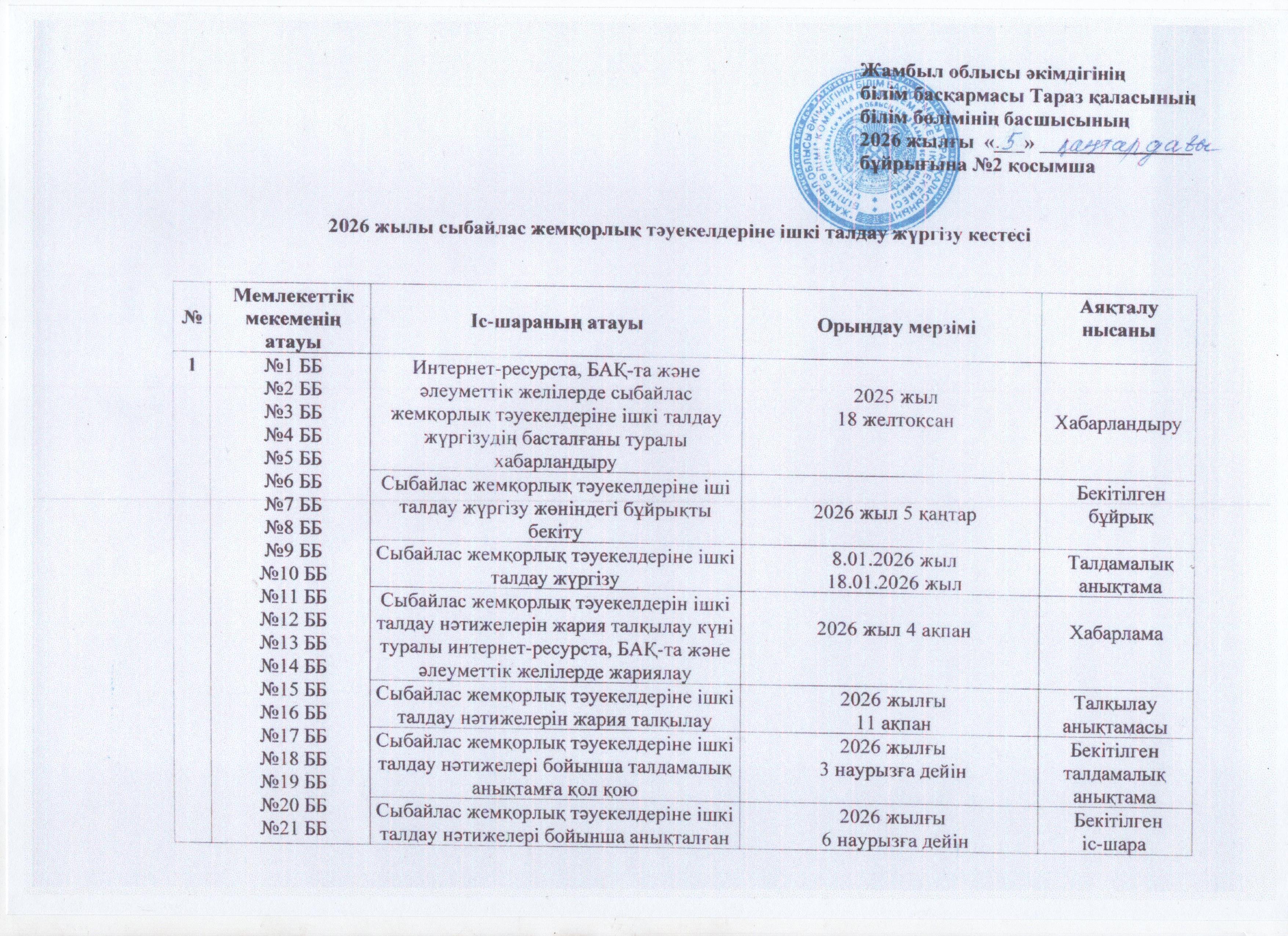 Сыбайлас жемқорлық тәуекелдеріне ішкі талдау жүргізу туралы » Марзия апа бб