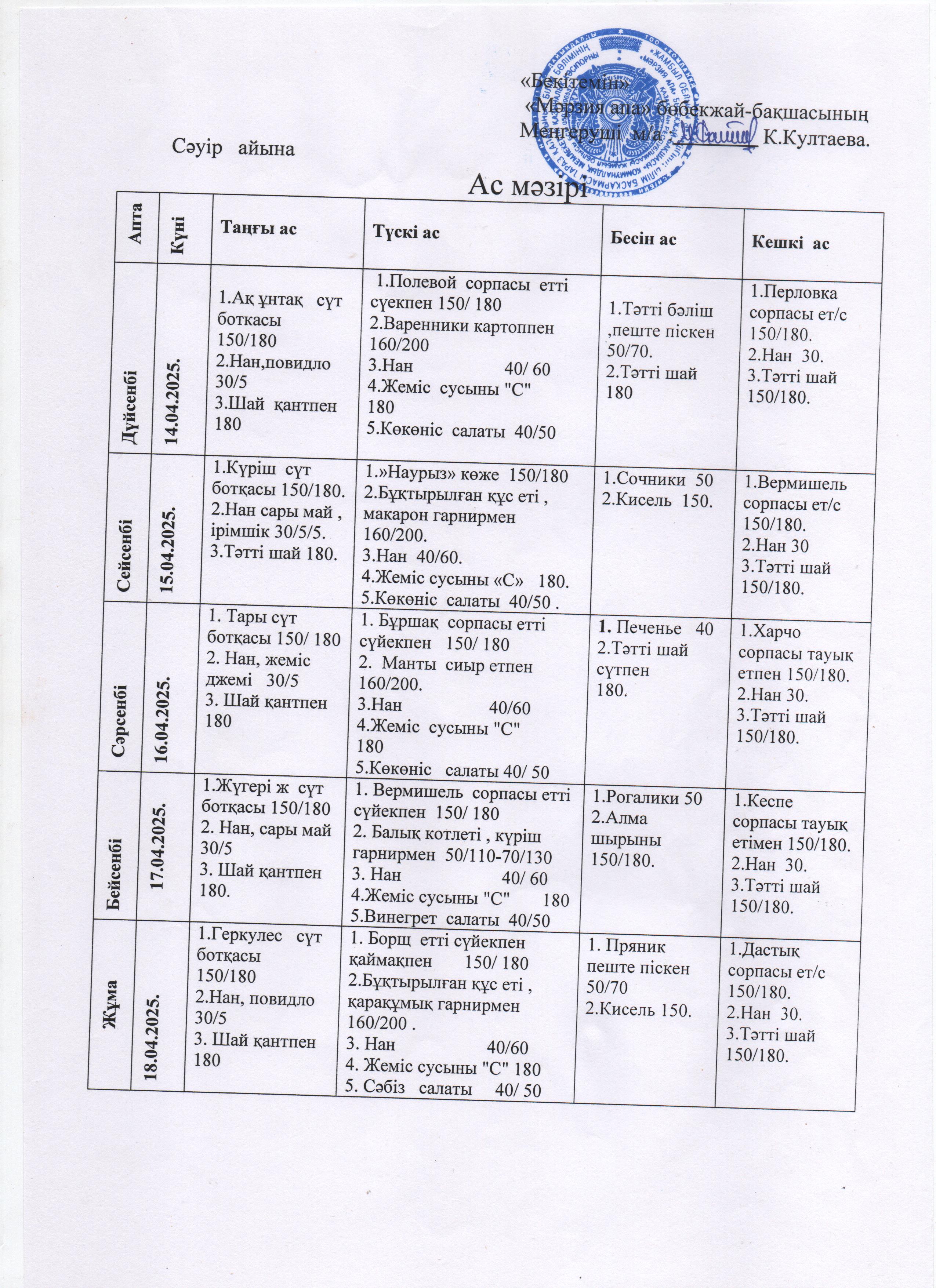 25 сәуір 2022 меню