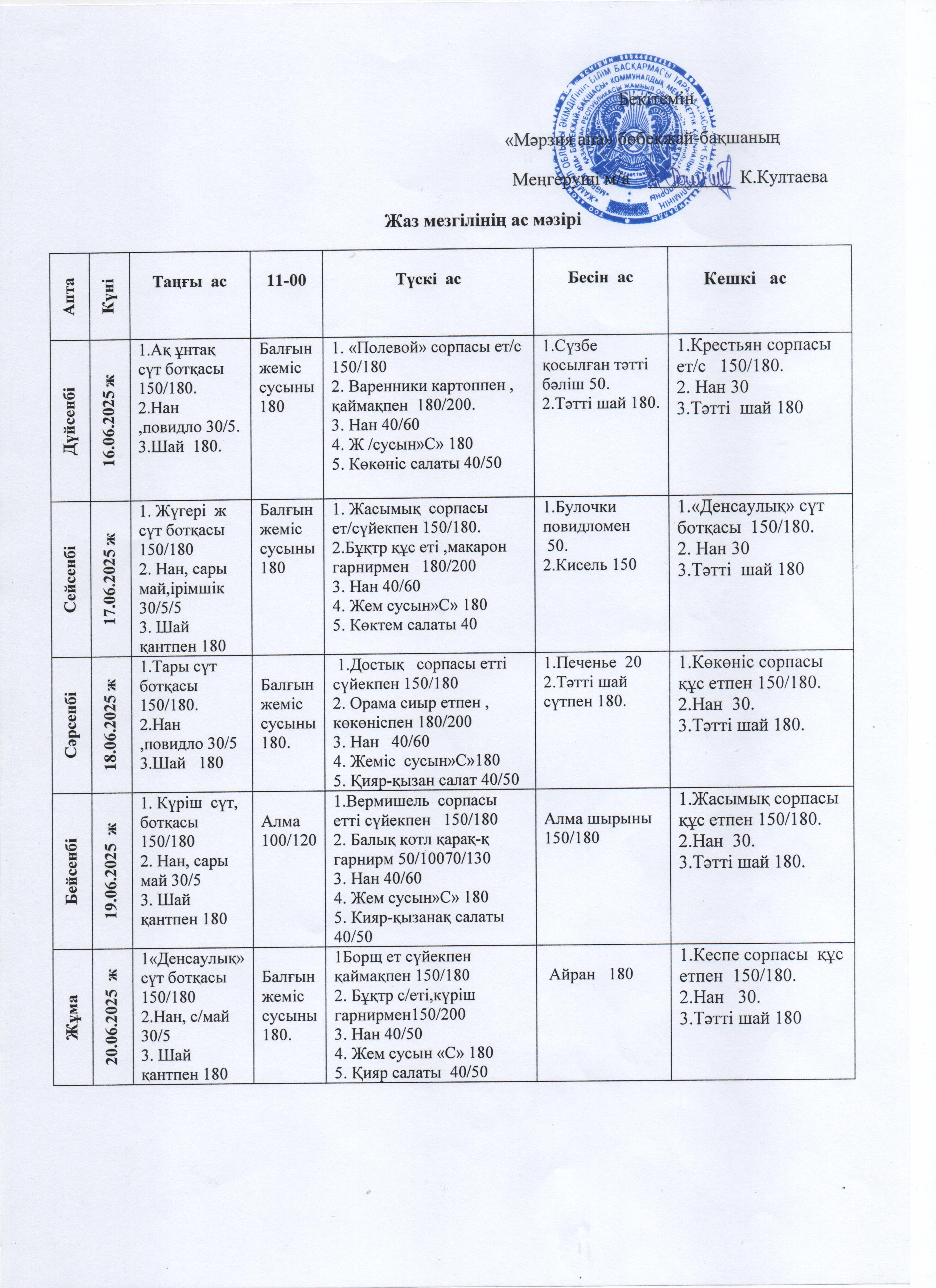 16 қыркүйек 2024 ас мәзірі